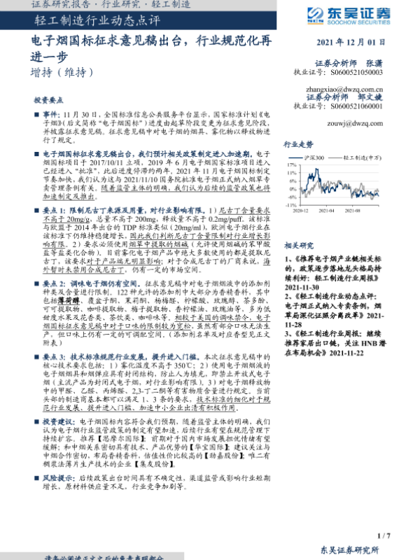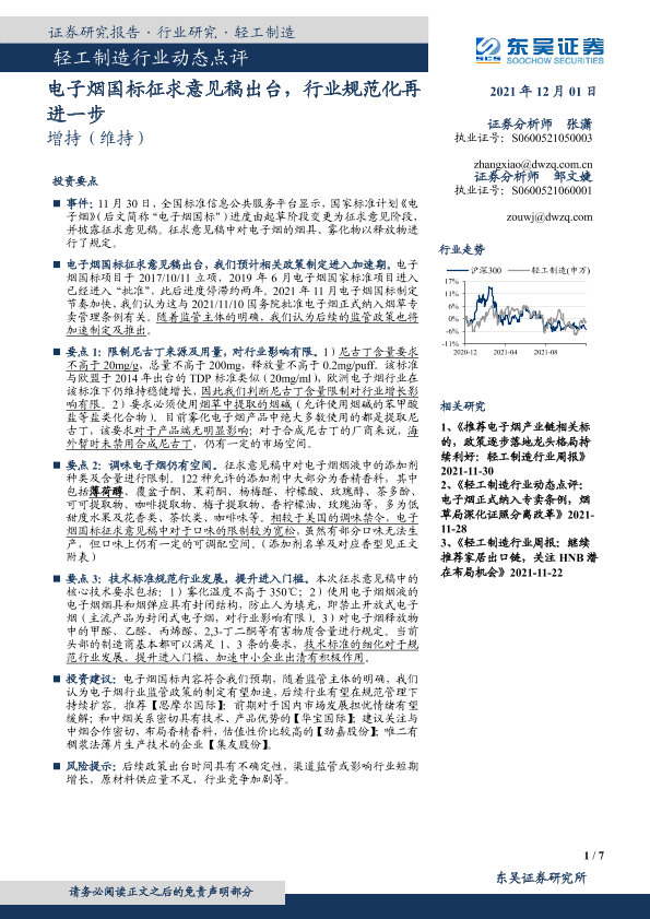 【东吴证券】【20211201】轻工制造行业动态点评:电子烟国标征求意见稿出台,行业规范化再进一步-7页