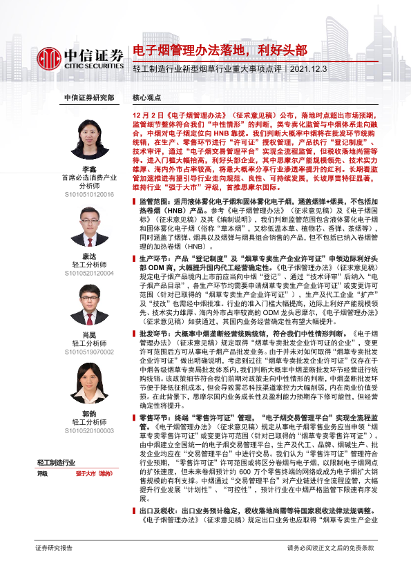 【中信证券】【20211203】轻工制造行业新型烟草行业重大事项点评:电子烟管理办法落地,利好头部-10页