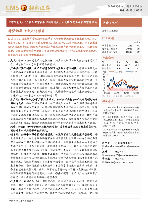 【海通证券】【20211203】新型烟草行业点评报告:许可证制度+扩产技改需审批利好制造龙头,批发环节变化或重塑零售格局-3页