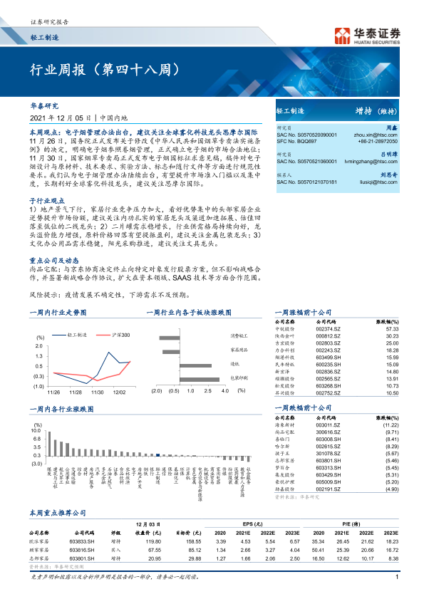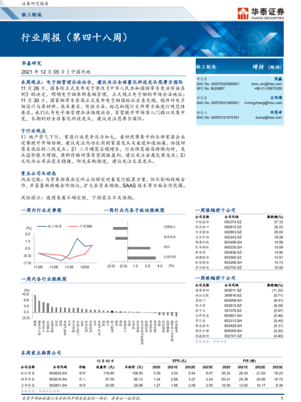 【华泰证券】【20211205】20211205-华泰证券-轻工制造行业周报(第四十八周)-13页