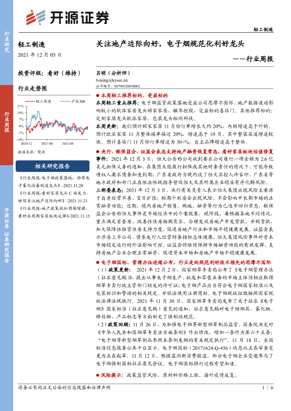 【开源证券】【20211205】轻工制造行业周报:关注地产边际向好,电子烟规范化利好龙头-6页