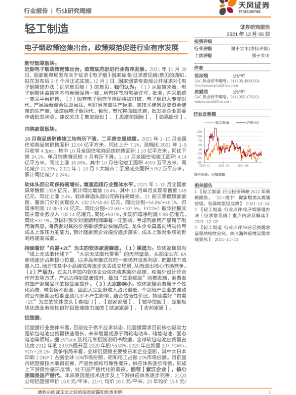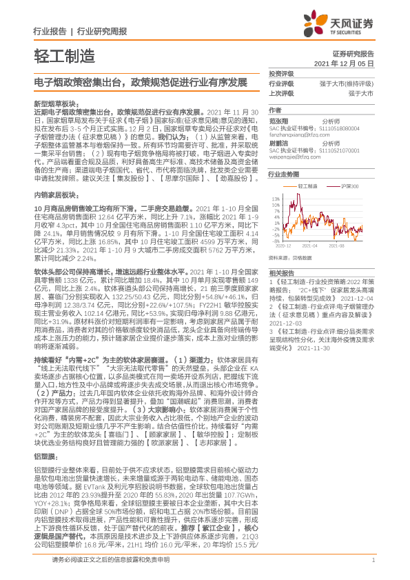 【天风证券】【20211205】20211205-天风证券-轻工制造行业研究周报:电子烟政策密集出台,政策规范促进行业有序发展-22页