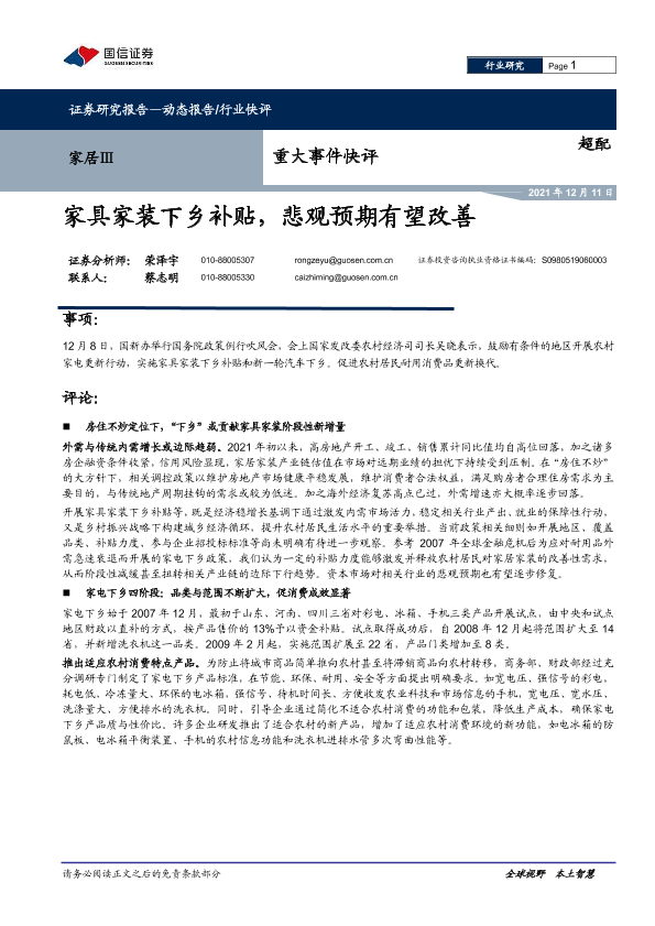 【国信证券】【20211211】家居Ⅲ:家具家装下乡补贴,悲观预期有望改善-4页