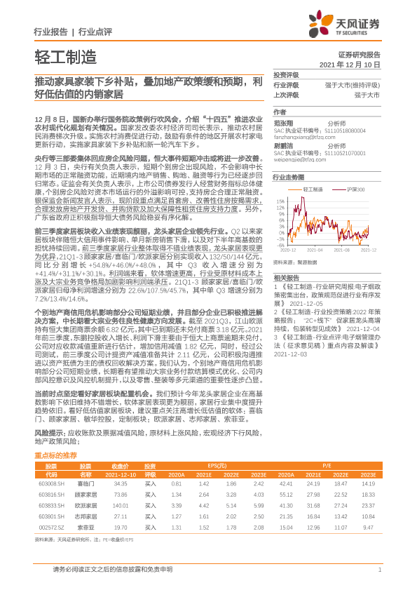 【天风证券】【20211210】轻工制造:推动家具家装下乡补贴,叠加地产政策缓和预期,利好低估值的内销家居-2页