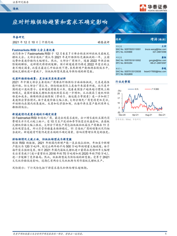 【华泰证券】【20211210】20211210-华泰证券-造纸动态点评:应对纤维供给趋紧和需求不确定影响-5页