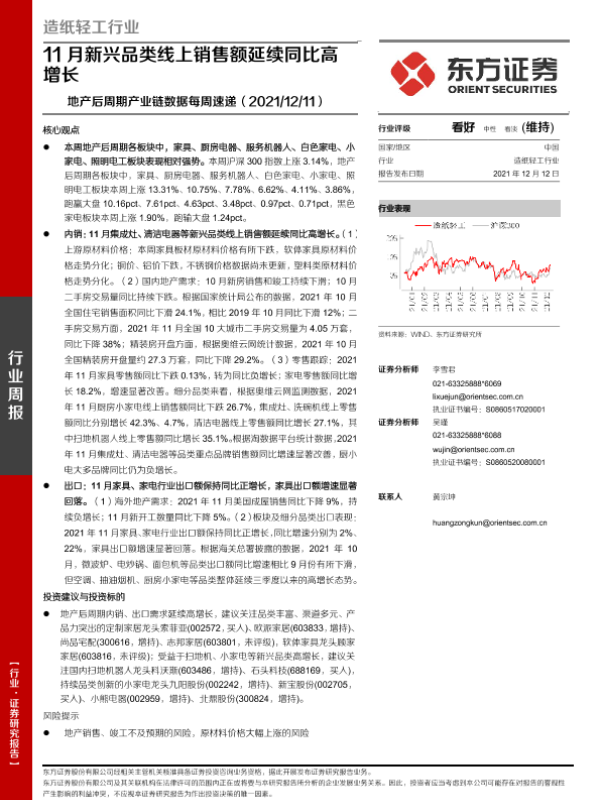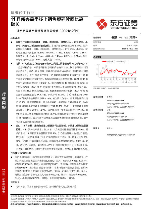 【东方证券】【20211212】20211212-东方证券-造纸轻工行业:地产后周期产业链数据每周速递-11月新兴品类线上销售额延续同比高增长-14页