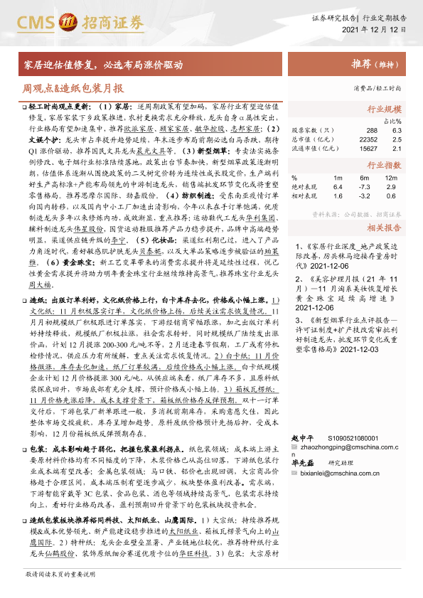 【海通证券】【20211212】消费品/轻工时尚行业周观点&造纸包装月报-14页