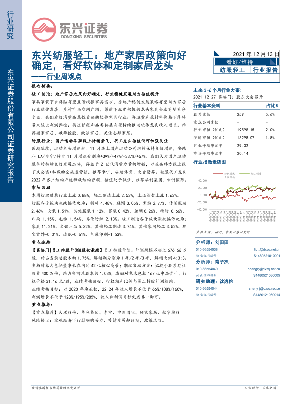 【东兴证券】【20211213】东兴纺服轻工行业周观点:地产家居政策向好确定,看好软体和定制家居龙头-10页