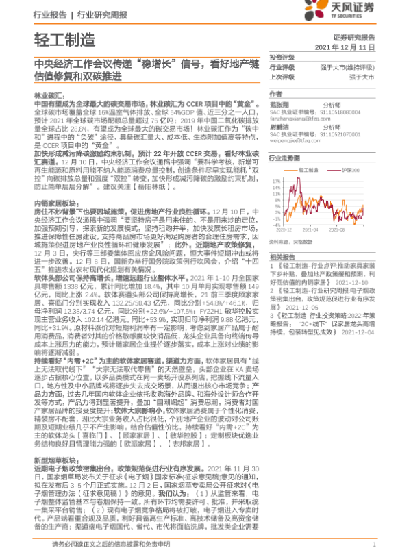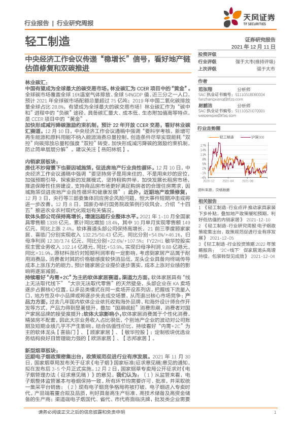 【天风证券】【20211211】20211211-天风证券-轻工制造行业研究周报:中央经济工作会议传递“稳增长”信号,看好地产链估值修复和双碳推进-24页