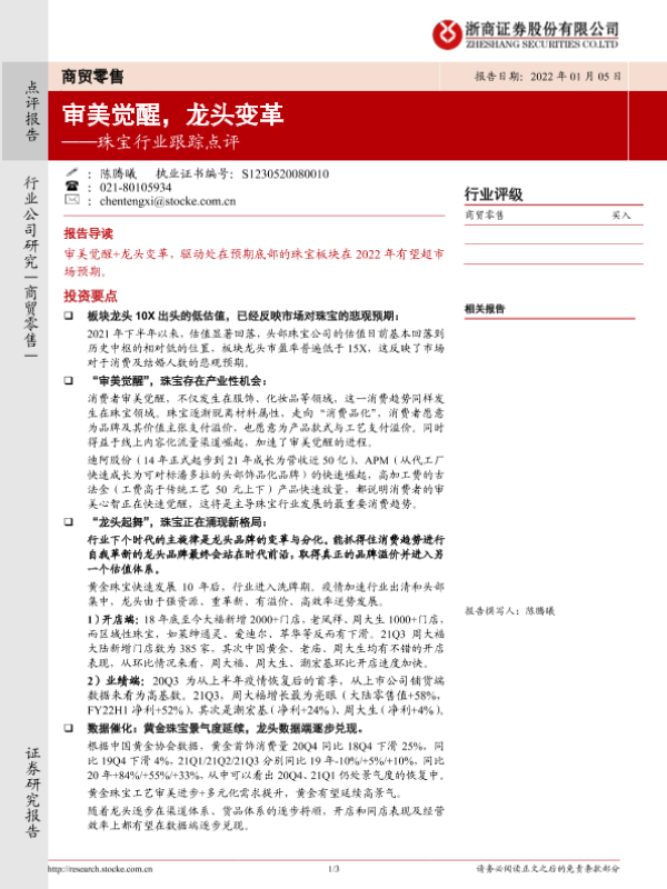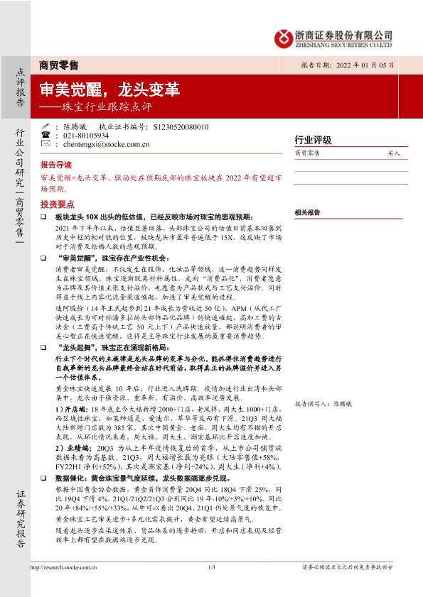 【浙商证券】【20220105】珠宝行业跟踪点评:审美觉醒,龙头变革-3页