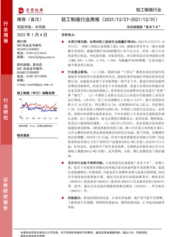 【东莞证券】【20220104】20220104-东莞证券-轻工制造行业周报:发改委鼓励“家具下乡”-9页