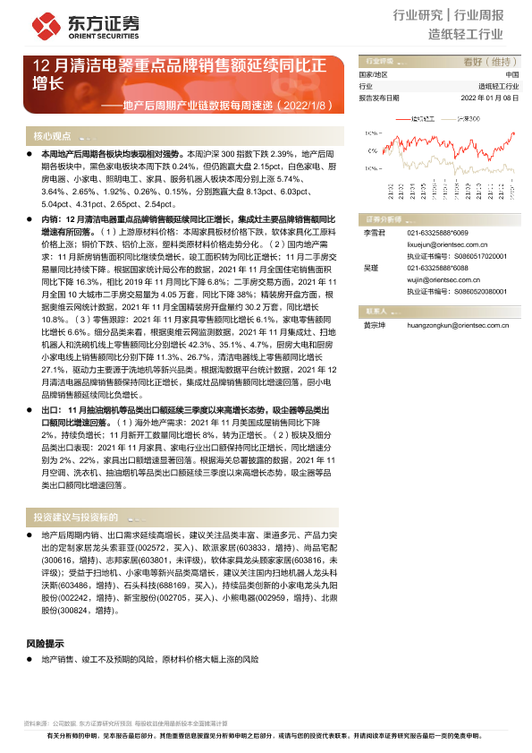 【东方证券】【20220108】20220108-东方证券-造纸轻工行业:地产后周期产业链数据每周速递-12月清洁电器重点品牌销售额延续同比正增长-14页