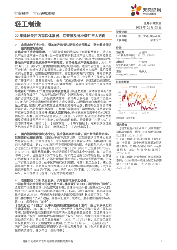 【天风证券】【20220103】20220103-天风证券-轻工制造行业研究周报:22年建议关注内销软体家居、铝塑膜及林业碳汇三大方向-22页