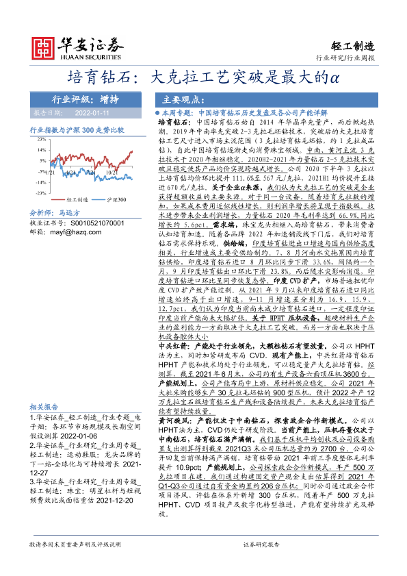 【华安证券】【20220111】20220111-华安证券-轻工制造行业周报:培育钻石:大克拉工艺突破是最大的α-30页
