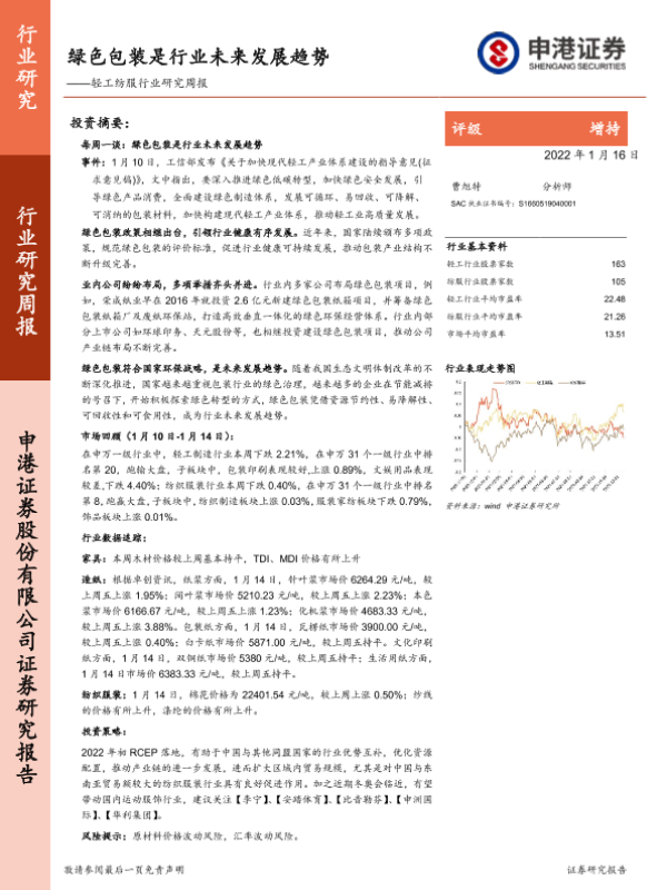 【申港证券】【20220116】轻工纺服行业研究周报:绿色包装是行业未来发展趋势-16页
