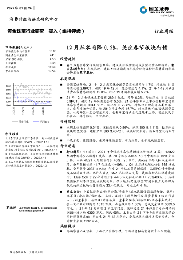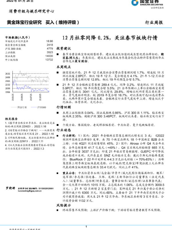 【国金证券】【20220124】20220124-国金证券-黄金珠宝行业周报:12月社零同降0.2%,关注春节板块行情-11页