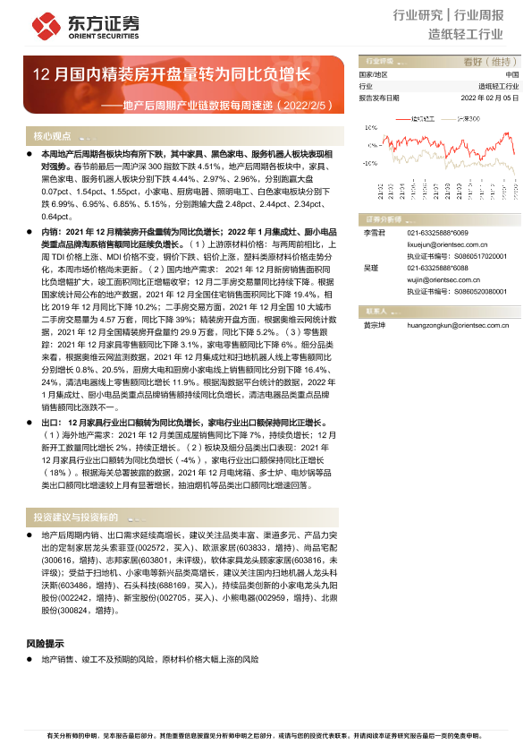 【东方证券】【20220205】20220205-东方证券-造纸轻工行业:地产后周期产业链数据每周速递-12月国内精装房开盘量转为同比负增长-14页