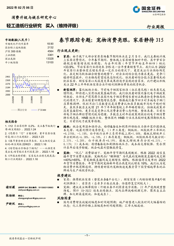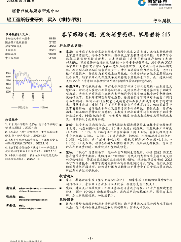 【国金证券】【20220206】20220206-国金证券-轻工造纸行业研究:春节跟踪专题:宠物消费亮眼,家居静待315-17页