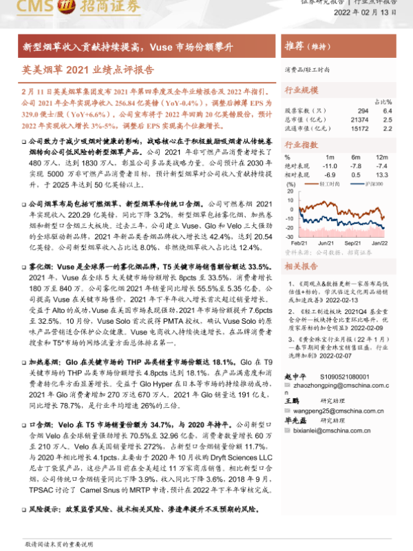 【海通证券】【20220213】英美烟草2021业绩点评报告:新型烟草收入贡献持续提高,Vuse市场份额攀升-3页