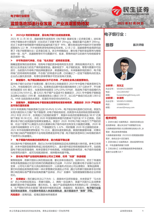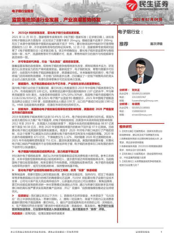 【民生证券】【20220208】电子烟行业报告:监管落地加速行业发展,产业浪潮蓄势待发-61页