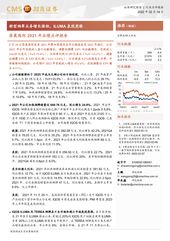 【海通证券】【20220214】菲莫国际2021年业绩点评报告-新型烟草业务增长强劲,ILUMA表现亮眼-4页