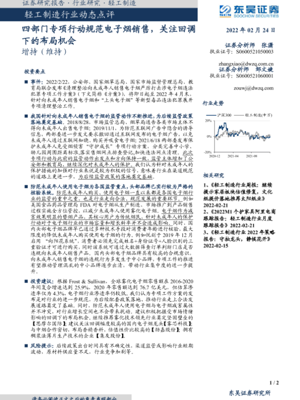 【东吴证券】【20220224】轻工制造行业动态点评:四部门专项行动规范电子烟销售,关注回调下的布局机会-2页
