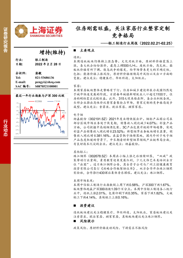 【上海证券】【20220228】20220228-上海证券-轻工制造行业周报:住房刚需旺盛,关注家居行业整家定制竞争格局-13页