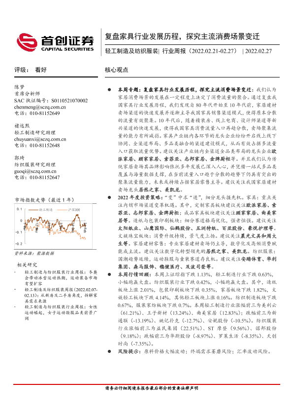 【首创证券】【20220227】20220227-首创证券-轻工制造及纺织服装行业周报:复盘家具行业发展历程,探究主流消费场景变迁-22页