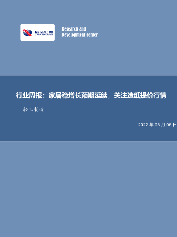 【信达证券】【20220306】20220306-信达证券-轻工制造行业周报:家居稳增长预期延续,关注造纸提价行情-22页