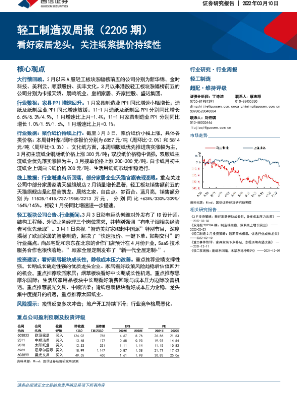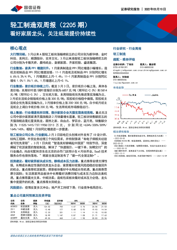 【国信证券】【20220310】轻工制造双周报(2205期):看好家居龙头,关注纸浆提价持续性-14页