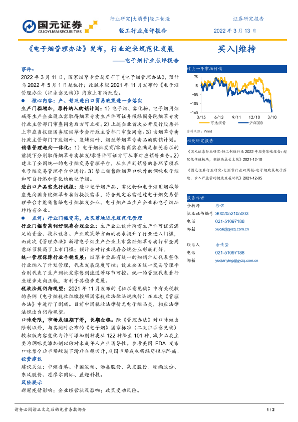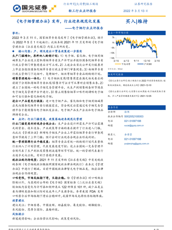 【国元证券】【20220313】《电子烟管理办法》发布,行业迎来规范化发展-2页