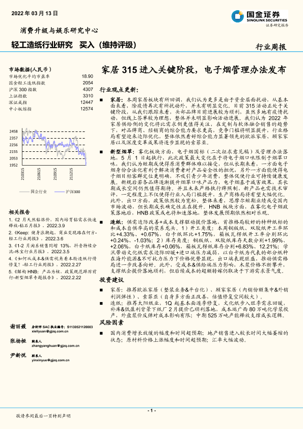 【国金证券】【20220313】轻工造纸行业研究:家居315进入关键阶段,电子烟管理办法发布-18页