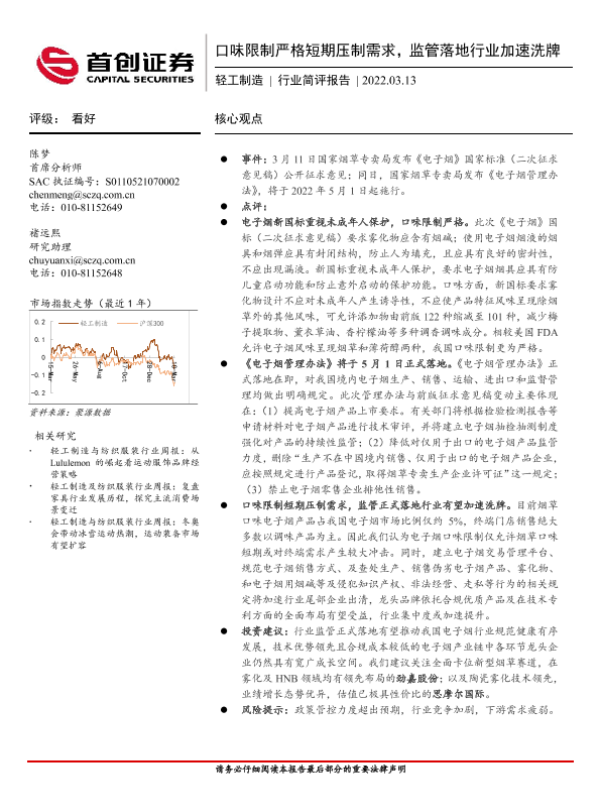【首创证券】【20220313】轻工制造行业简评报告:口味限制严格短期压制需求,监管落地行业加速洗牌-2页