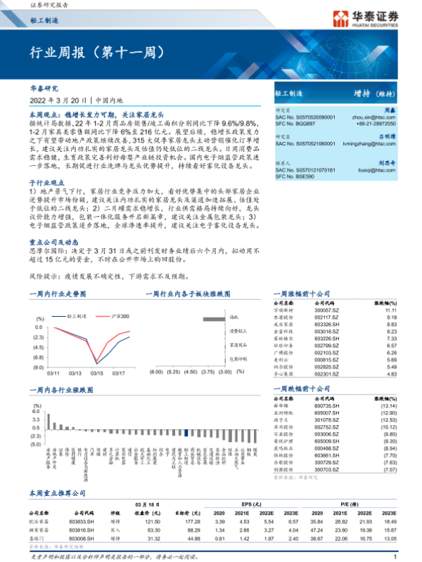 【华泰证券】【20220320】20220320-华泰证券-轻工制造行业周报(第十一周)-12页