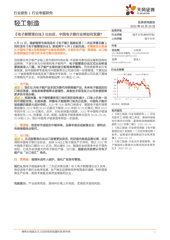 【天风证券】【20220320】《电子烟管理办法》出台后,中国电子烟行业将如何发展?-13页
