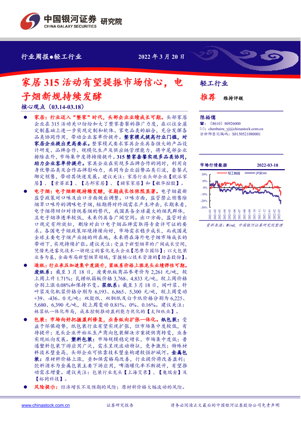 【银河证券】【20220320】20220320-中国银河-轻工行业周报:家居315活动有望提振市场信心,电子烟新规持续发酵-21页
