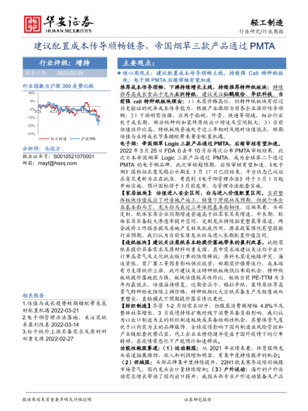 【华安证券】【20220328】20220328-华安证券-轻工制造行业周报:建议配置成本传导顺畅链条,帝国烟草三款产品通过PMTA-22页