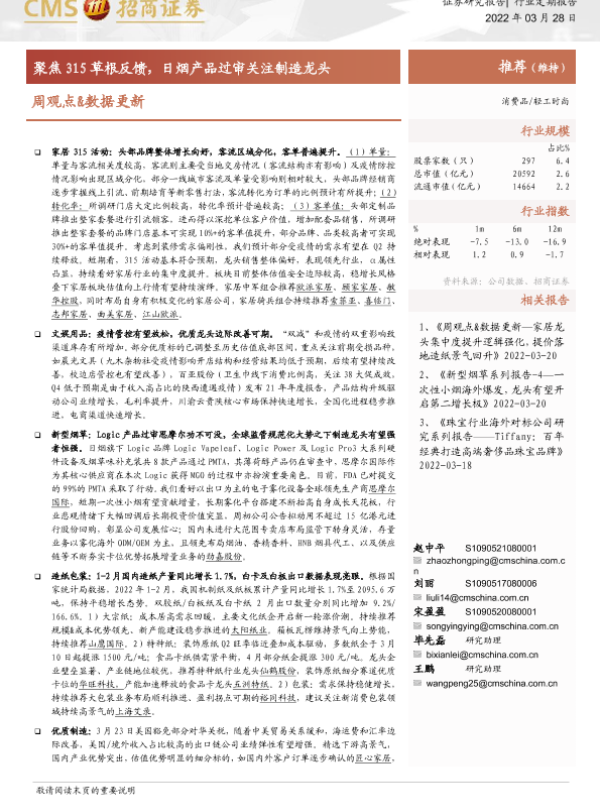 【海通证券】【20220328】轻工时尚周观点&数据更新:聚焦315草根反馈,日烟产品过审关注制造龙头-25页