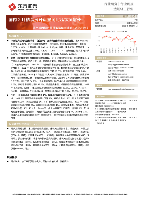 【东方证券】【20220405】地产后周期产业链数据每周速递:国内2月精装房开盘量同比延续负增长-13页