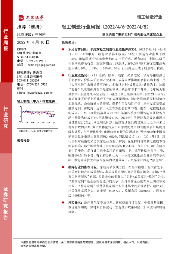 【东莞证券】【20220410】20220410-东莞证券-轻工制造行业周报:建议关注“整家定制”相关的优质家居企业-11页