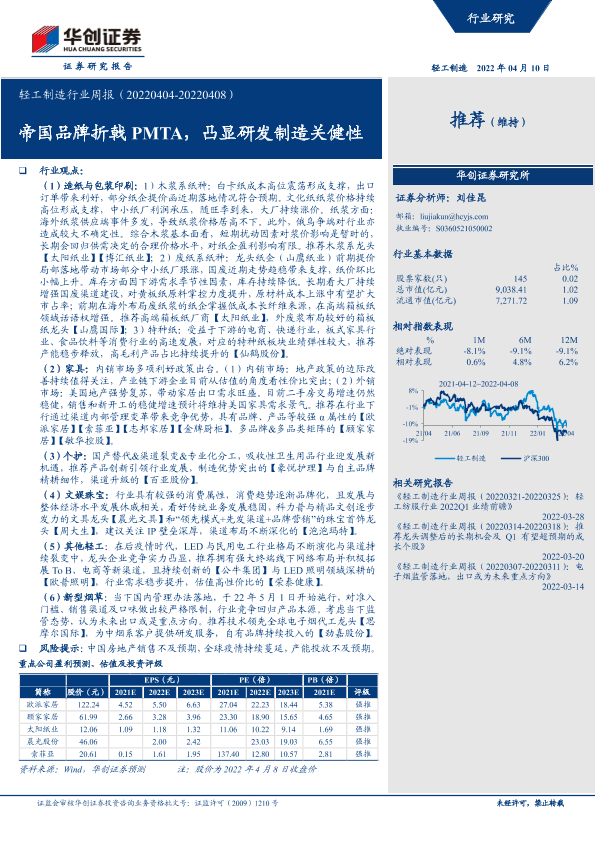【华创证券】【20220410】20220410-华创证券-轻工制造行业周报:帝国品牌折戟PMTA,凸显研发制造关健性-23页