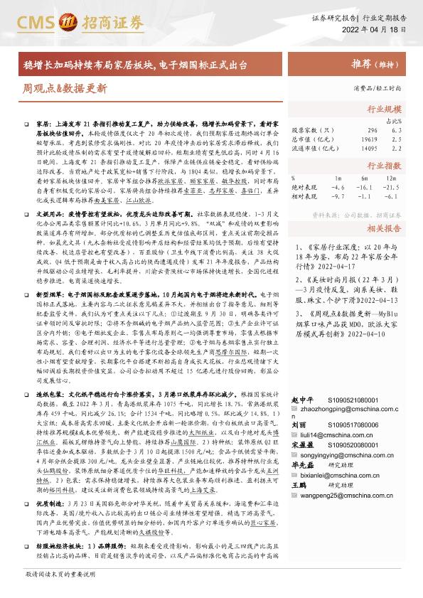 复工复产 家居行业 消费品 电子烟国标 稳增长