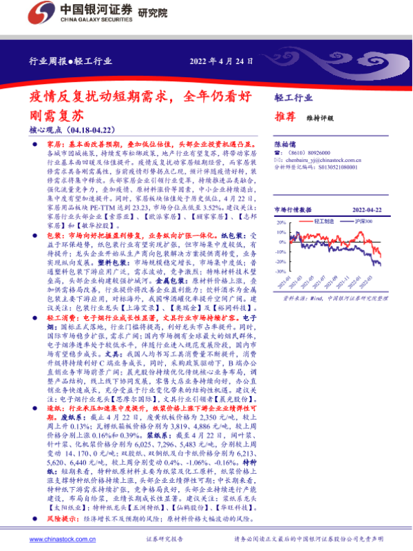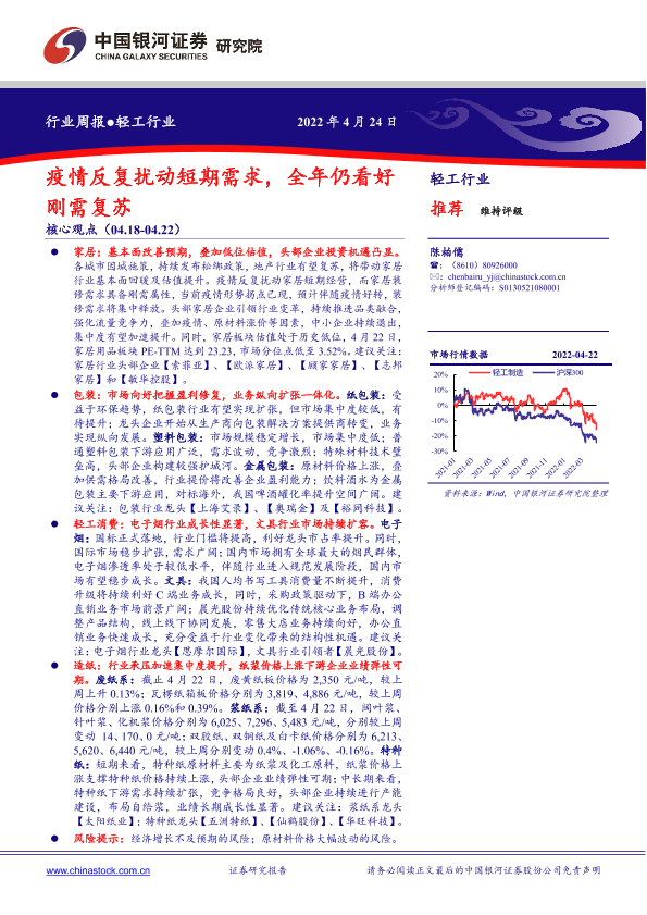 【银河证券】【20220424】20220424-中国银河-轻工行业周报:疫情反复扰动短期需求,全年仍看好刚需复苏-26页