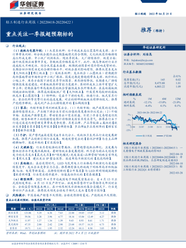 【华创证券】【20220425】20220425-华创证券-轻工制造行业周报:重点关注一季报超预期标的-17页