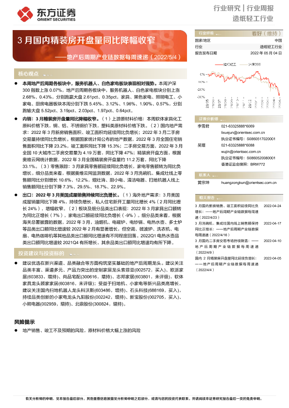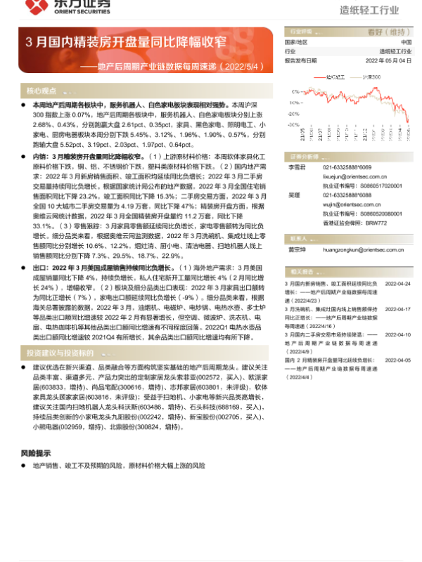 【东方证券】【20220504】3月国内精装房开盘量同比降幅收窄-13页