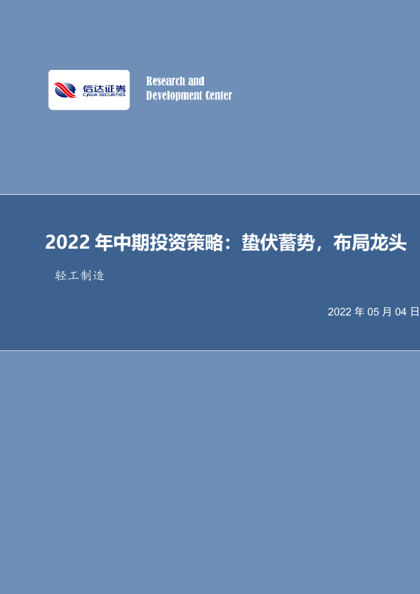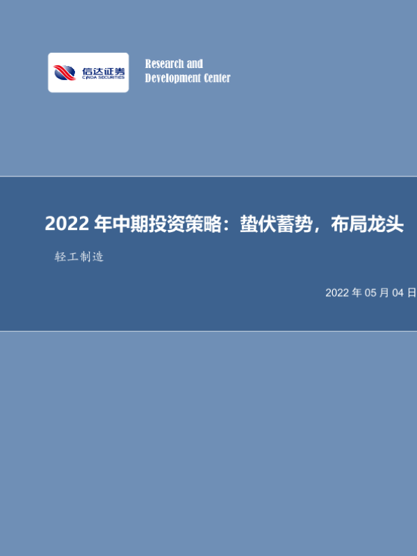 【信达证券】【20220504】20220504-信达证券-轻工制造行业投资策略:蛰伏蓄势,布局龙头-43页