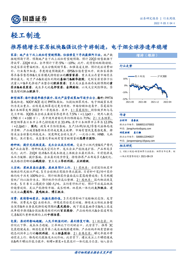 【国盛证券】【20220504】轻工制造:推荐稳增长家居板块&强议价中游制造,电子烟全球渗透率稳增-58页