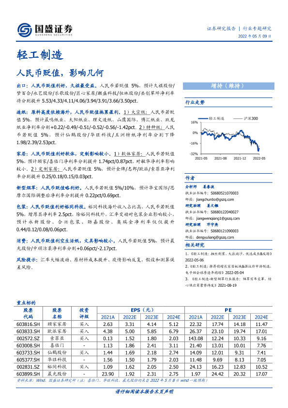 【国盛证券】【20220509】轻工制造行业专题研究:人民币贬值,影响几何-16页