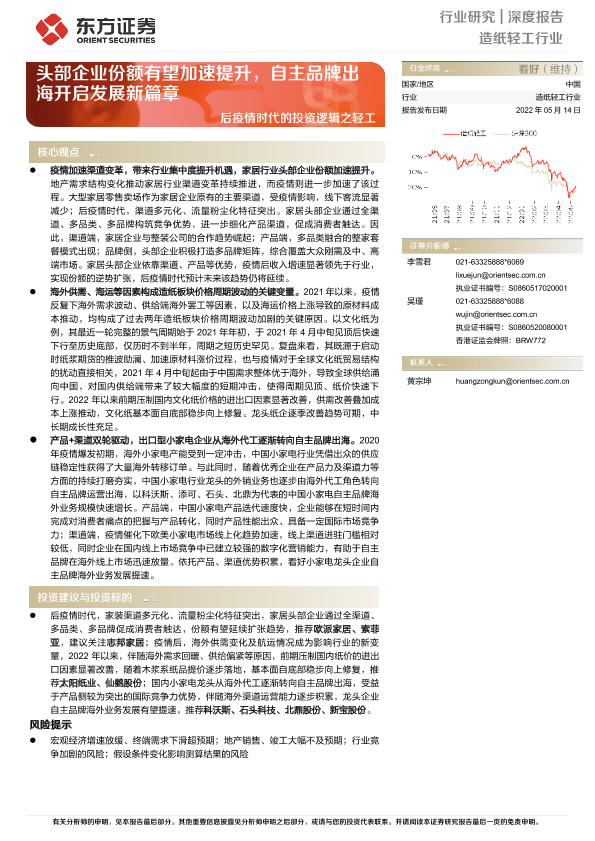 【东方证券】【20220514】后疫情时代的投资逻辑之轻工:头部企业份额有望加速提升,自主品牌出海开启发展新篇章-28页