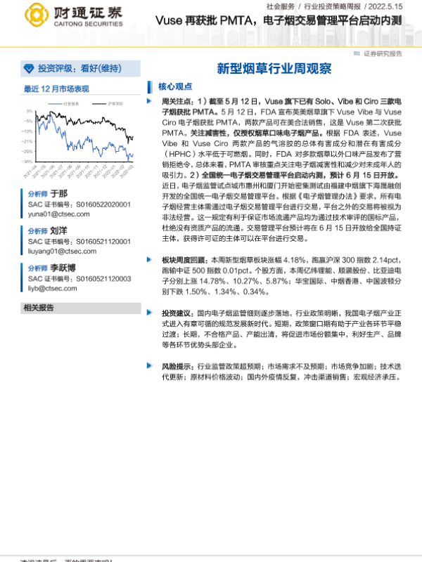 【财通证券】【20220515】20220515-财通证券-新型烟草行业周观察:Vuse再获批PMTA,电子烟交易管理平台启动内测-7页